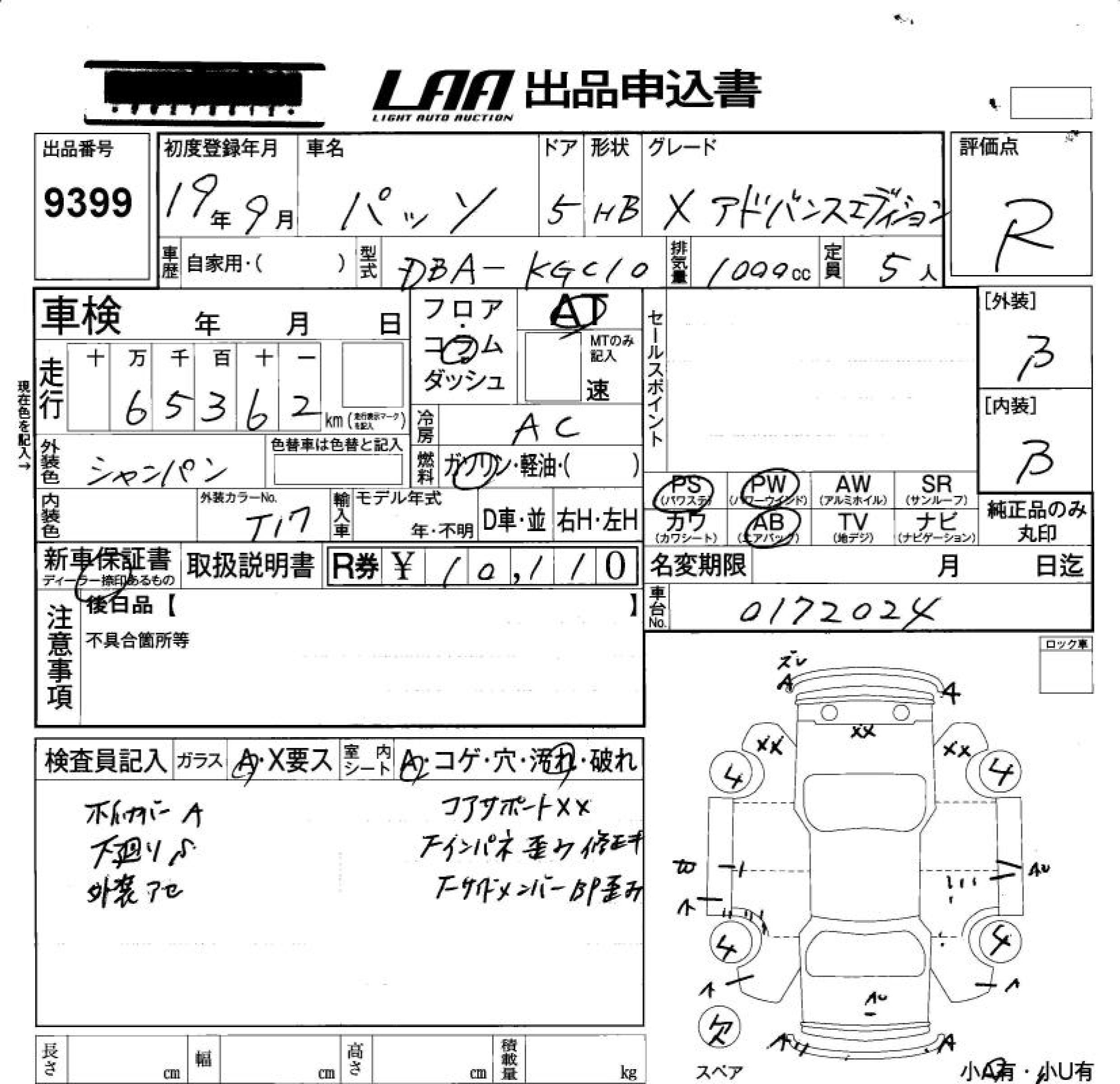 TOYOTA PASSO - лот 9399