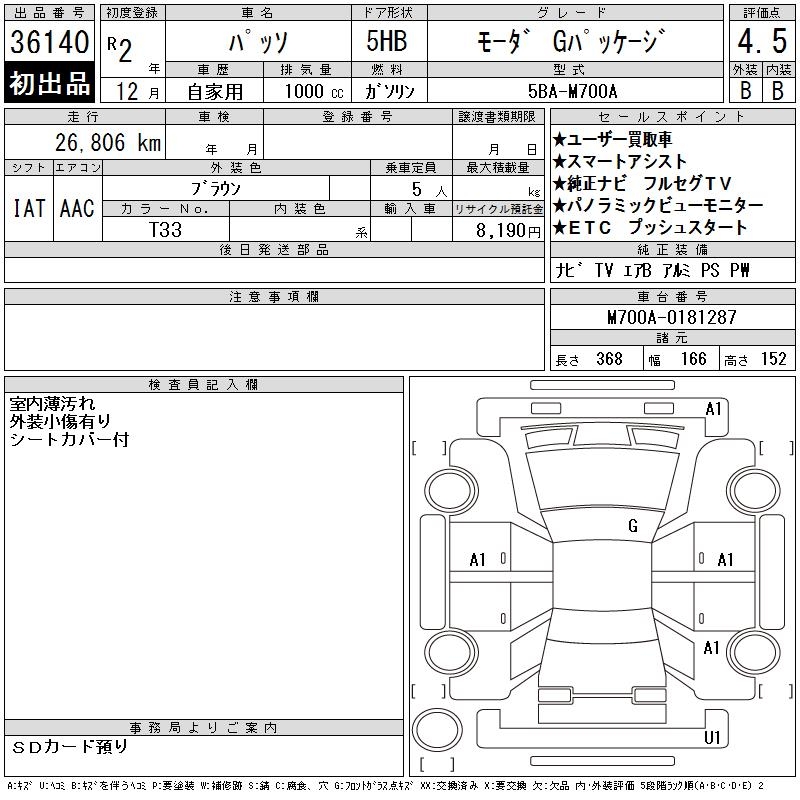 TOYOTA PASSO - лот 36140