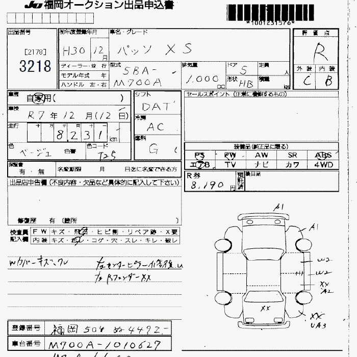 TOYOTA PASSO - лот 3218