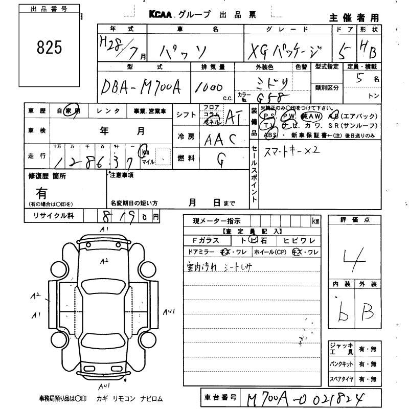 TOYOTA PASSO - лот 825