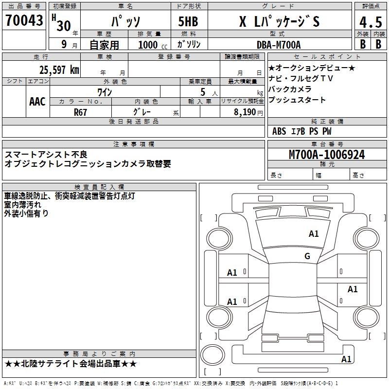 TOYOTA PASSO - лот 70043