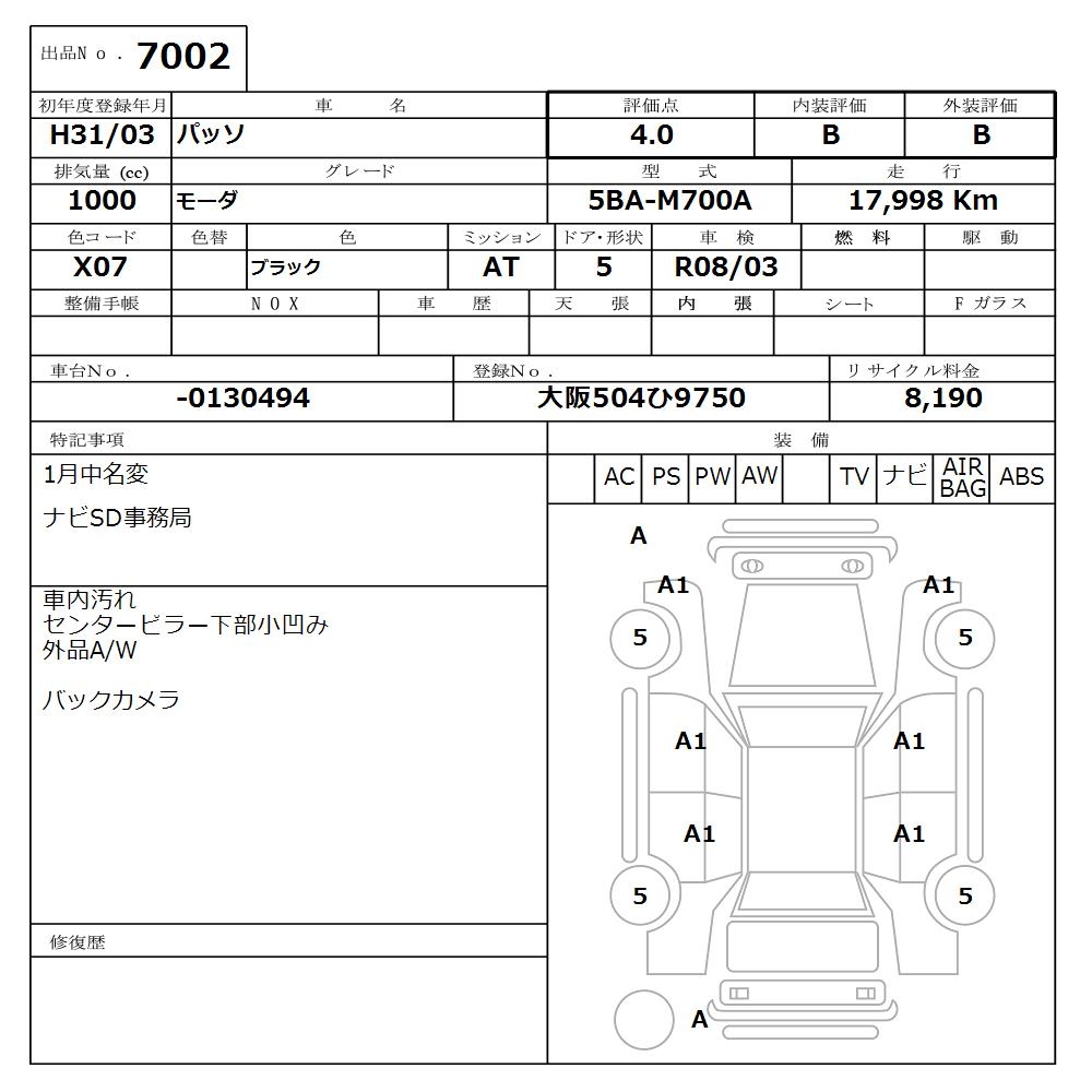 TOYOTA PASSO - лот 7002