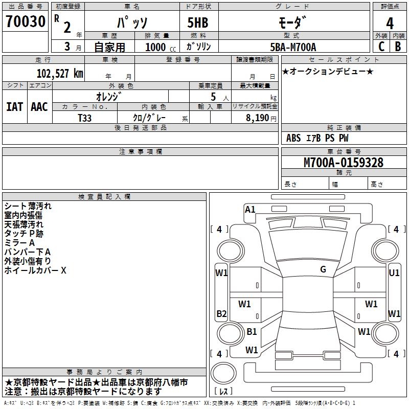 TOYOTA PASSO - лот 70030