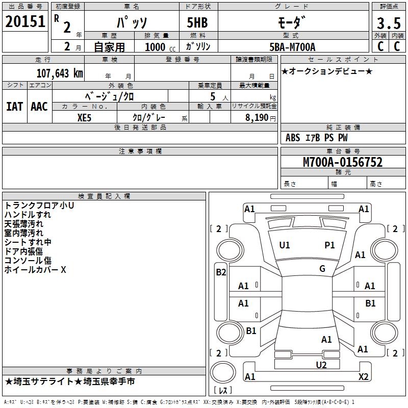 TOYOTA PASSO - лот 20151