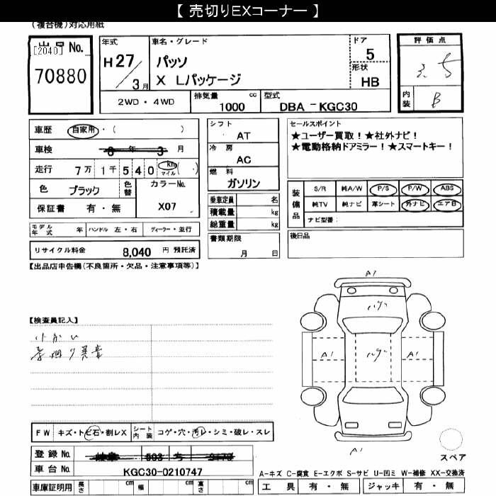 TOYOTA PASSO - лот 70880