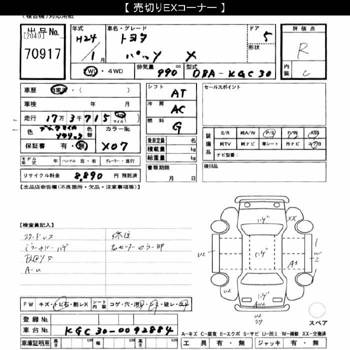 TOYOTA PASSO - лот 70917