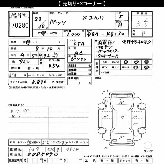 TOYOTA PASSO - лот 70280