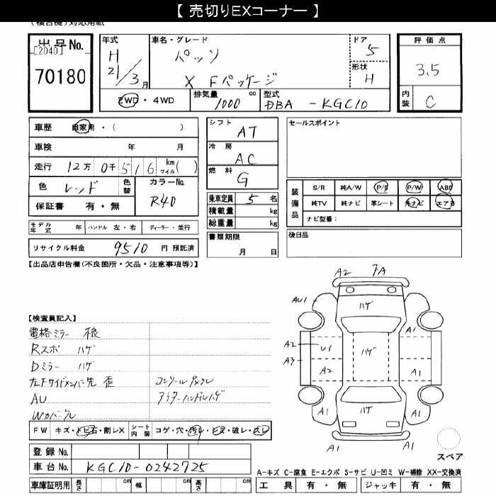 TOYOTA PASSO - лот 70180