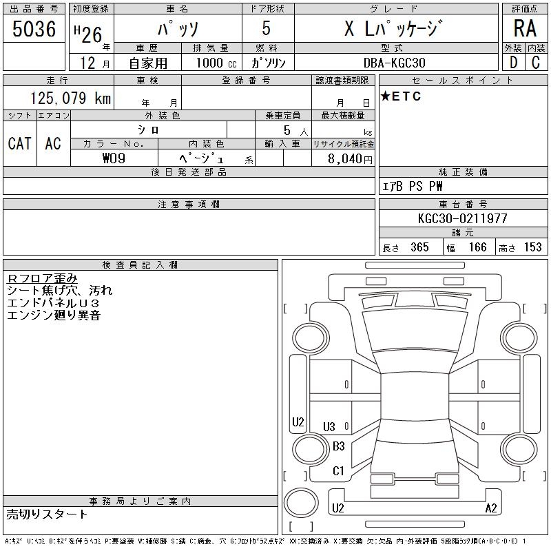 TOYOTA PASSO - лот 5036