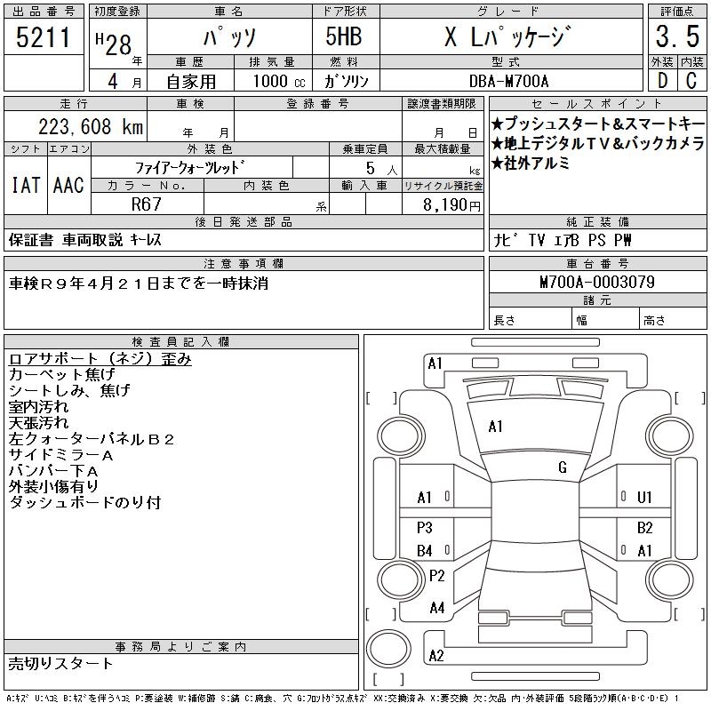 TOYOTA PASSO - лот 5211