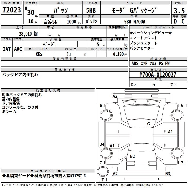 TOYOTA PASSO - лот 72023