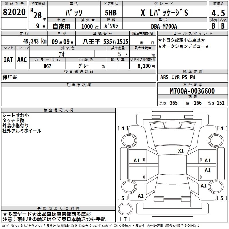 TOYOTA PASSO - лот 82020
