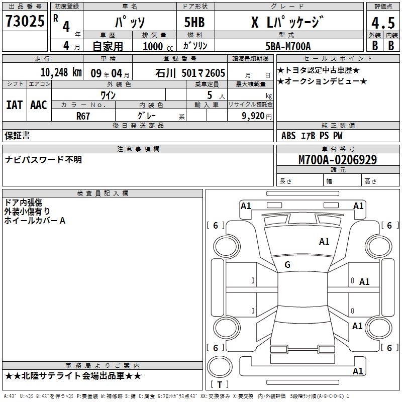 TOYOTA PASSO - лот 73025
