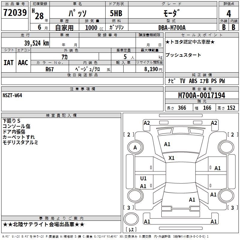 TOYOTA PASSO - лот 72039