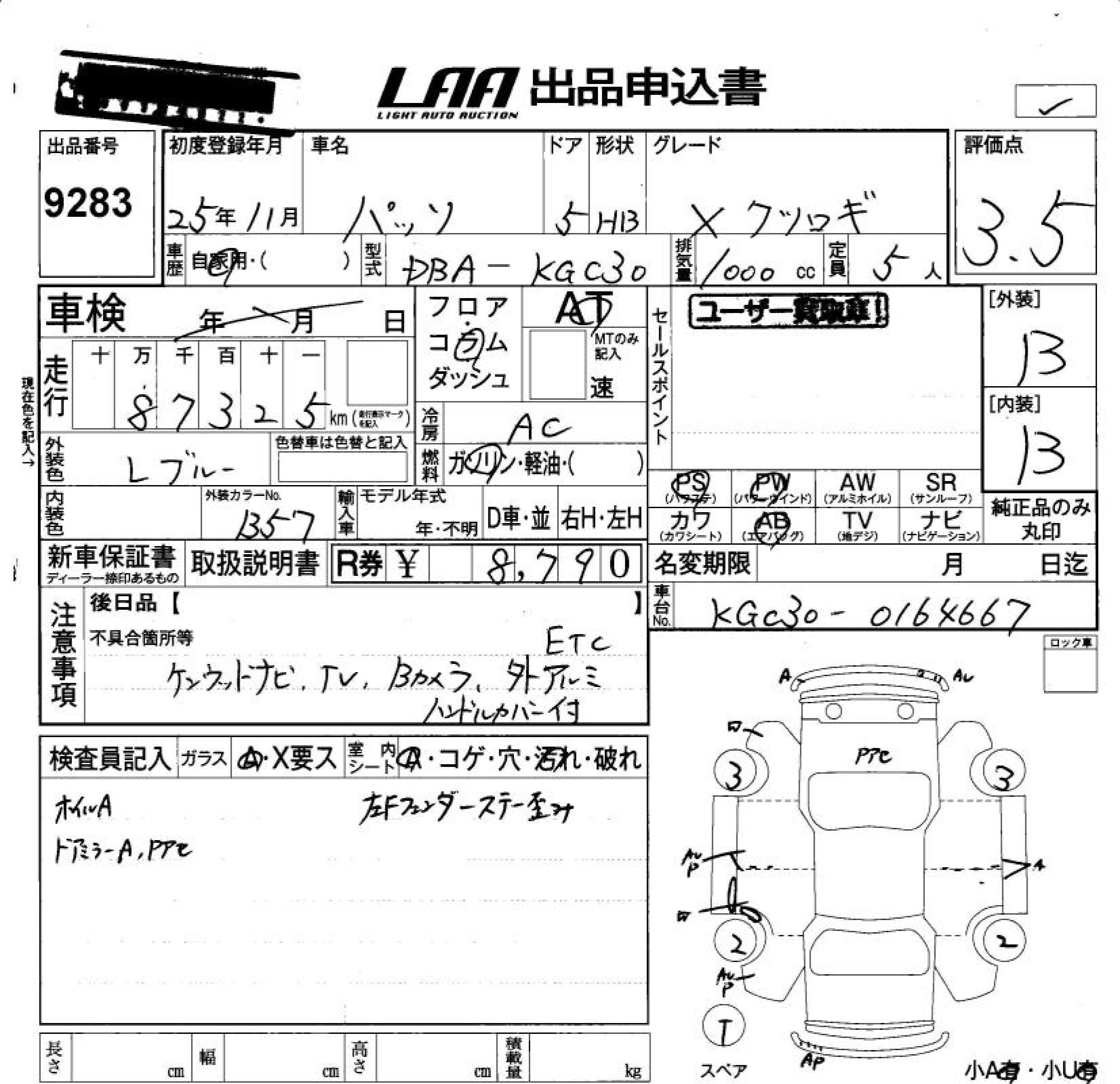 TOYOTA PASSO - лот 9283