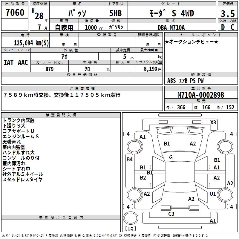 TOYOTA PASSO MO-DAS 4WD - лот 7060