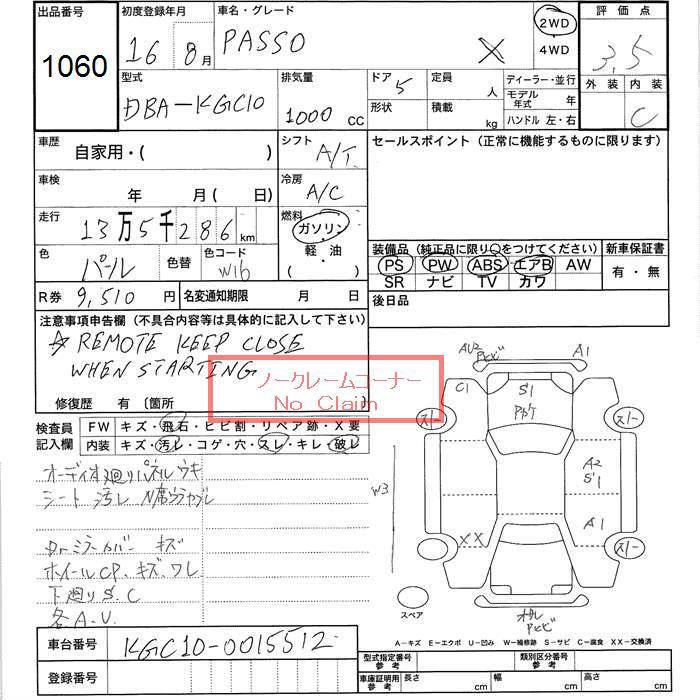 TOYOTA PASSO X - лот 1060
