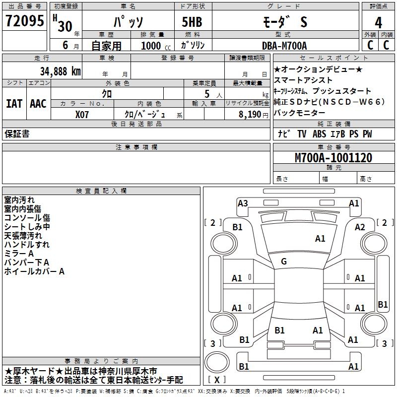 TOYOTA PASSO MO-DAS - лот 72095