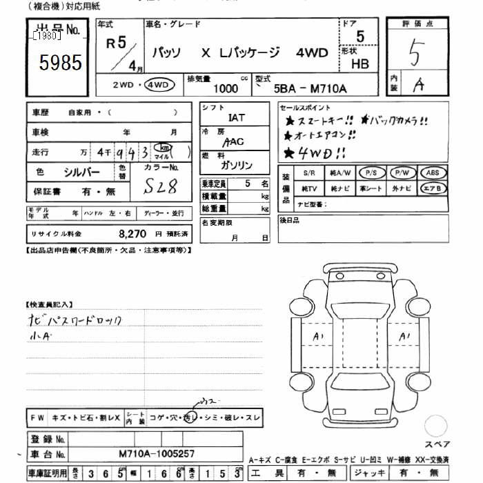 TOYOTA PASSO 4WD X L-PKG - лот 5985