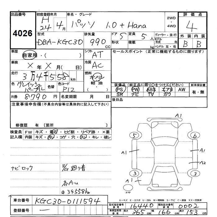 TOYOTA PASSO +Hana - лот 4026