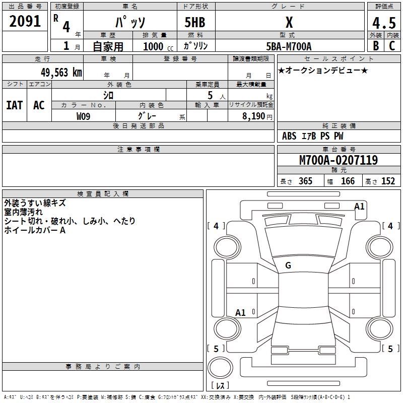 TOYOTA PASSO X - лот 2091