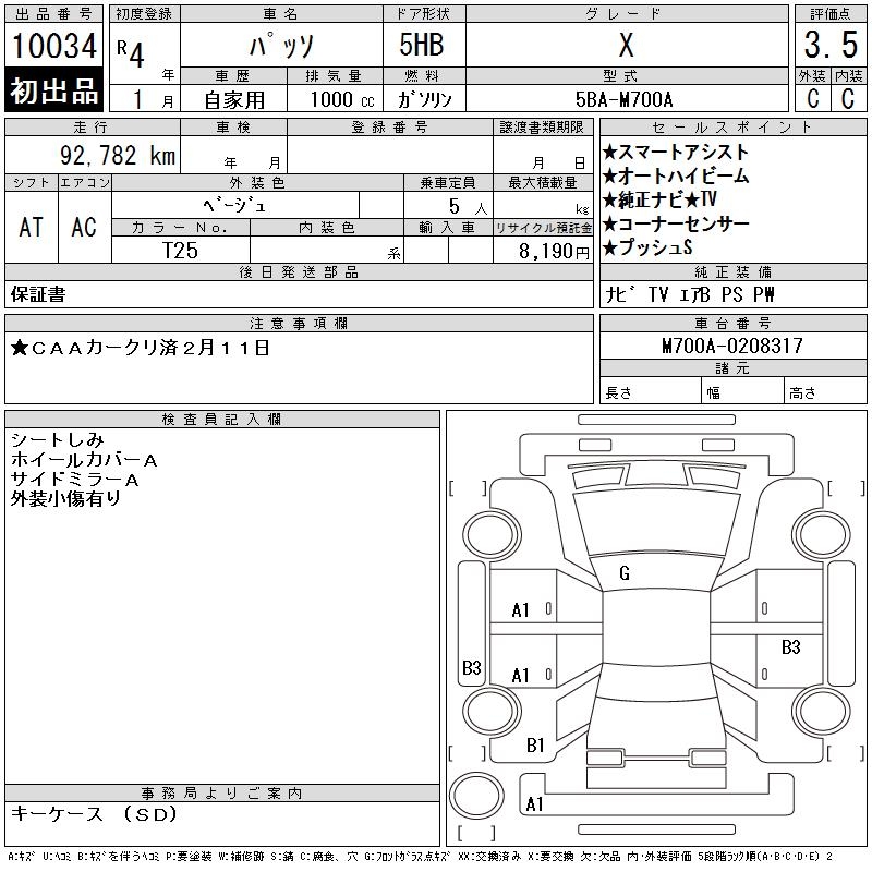 TOYOTA PASSO X - лот 10034