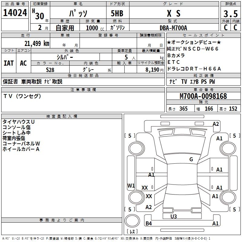 TOYOTA PASSO X S - лот 14024