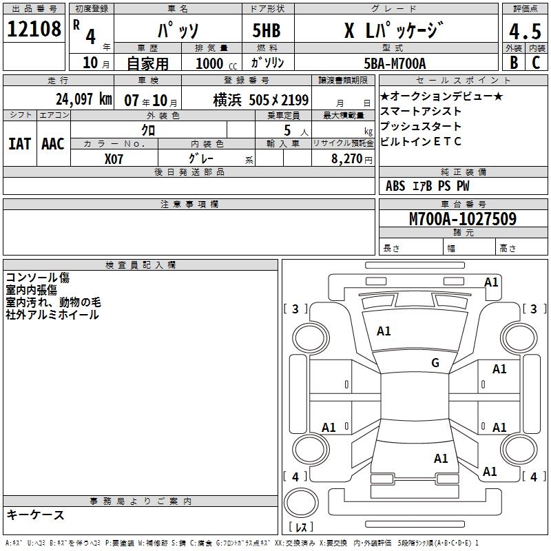 TOYOTA PASSO X L PACKAGE - лот 12108