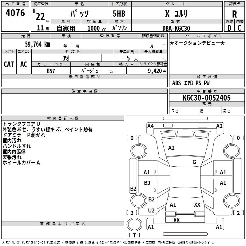 TOYOTA PASSO X YURURI - лот 4076