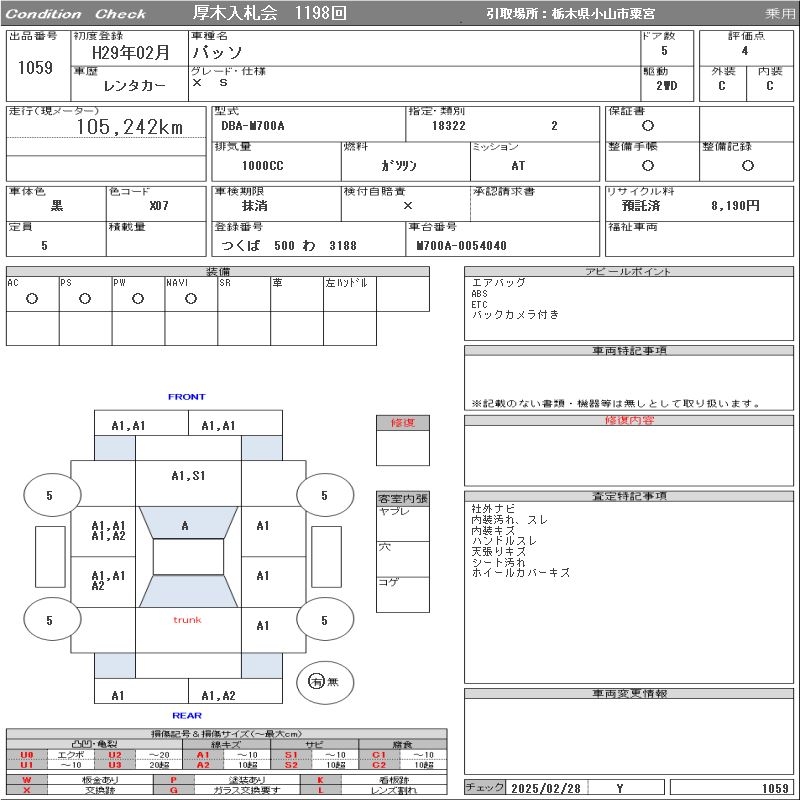TOYOTA PASSO X S - лот 1059
