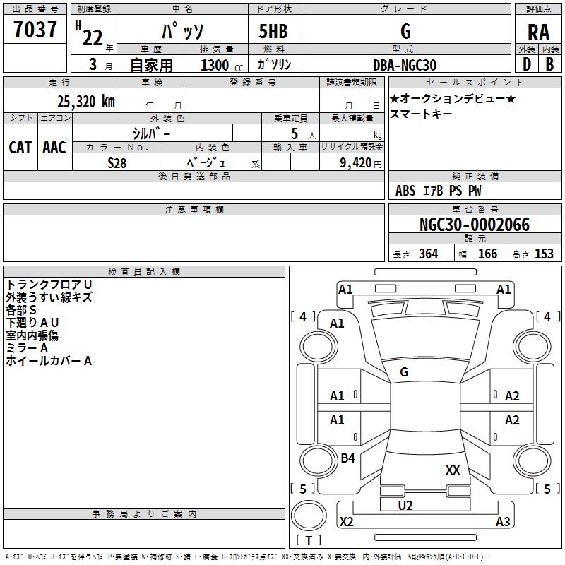 TOYOTA PASSO G - лот 7037