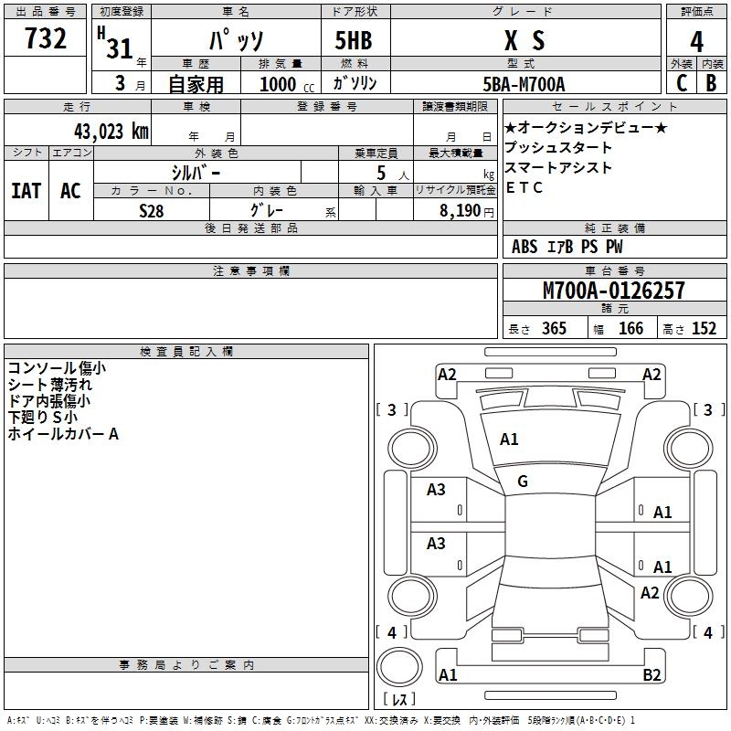 TOYOTA PASSO X S - лот 732