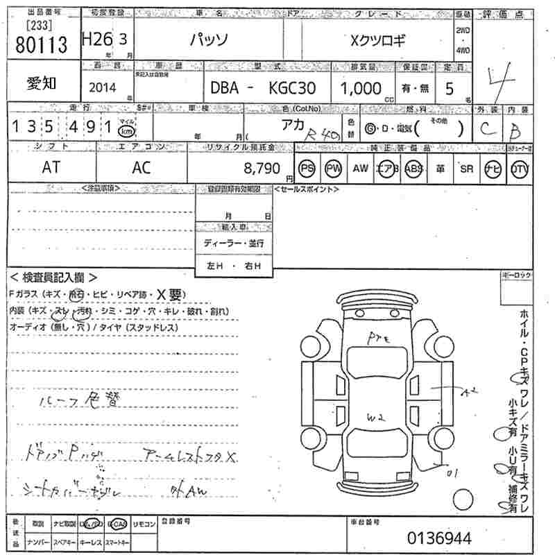 TOYOTA PASSO XKTSUROGI - лот 80113