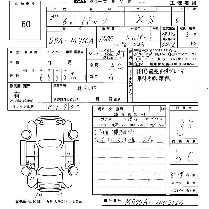 TOYOTA PASSO X S - лот 60