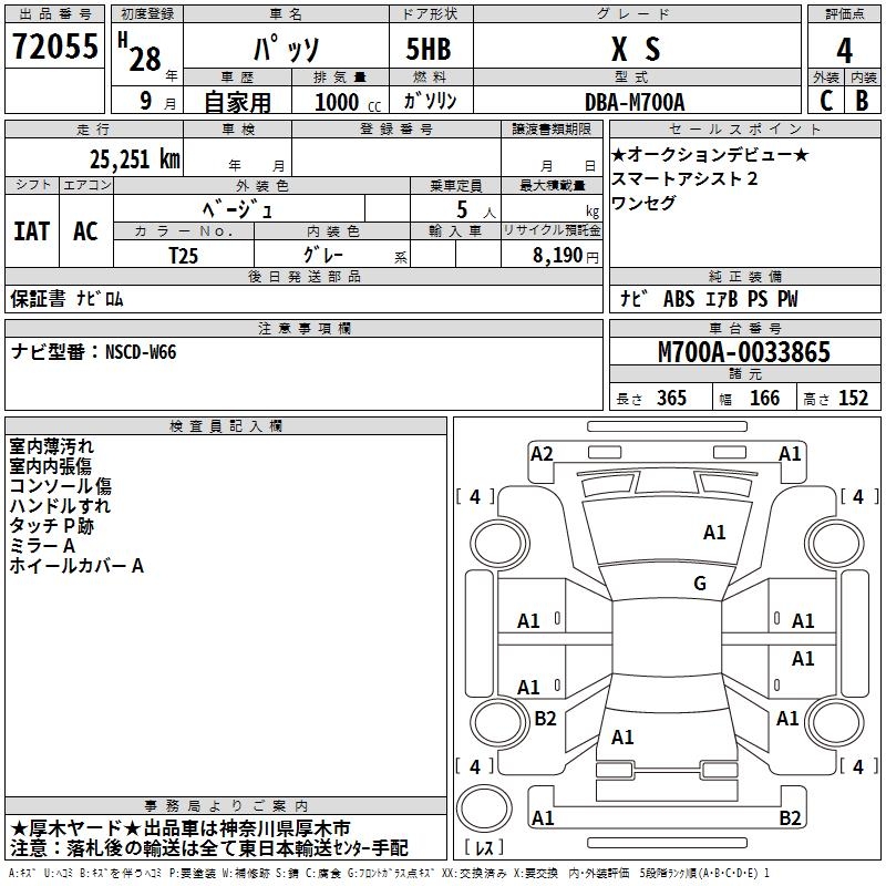 TOYOTA PASSO X S - лот 72055