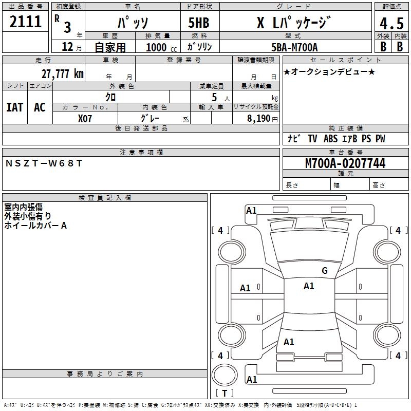 TOYOTA PASSO X L PACKAGE - лот 2111