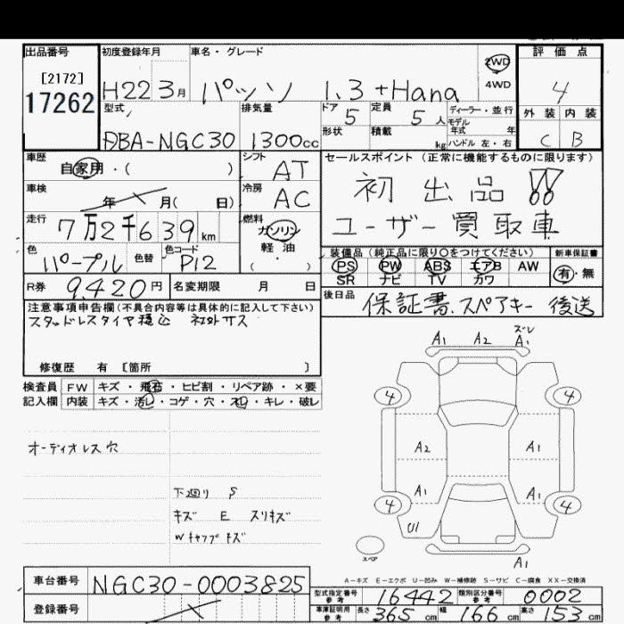 TOYOTA PASSO 1.3+Hana - лот 17262