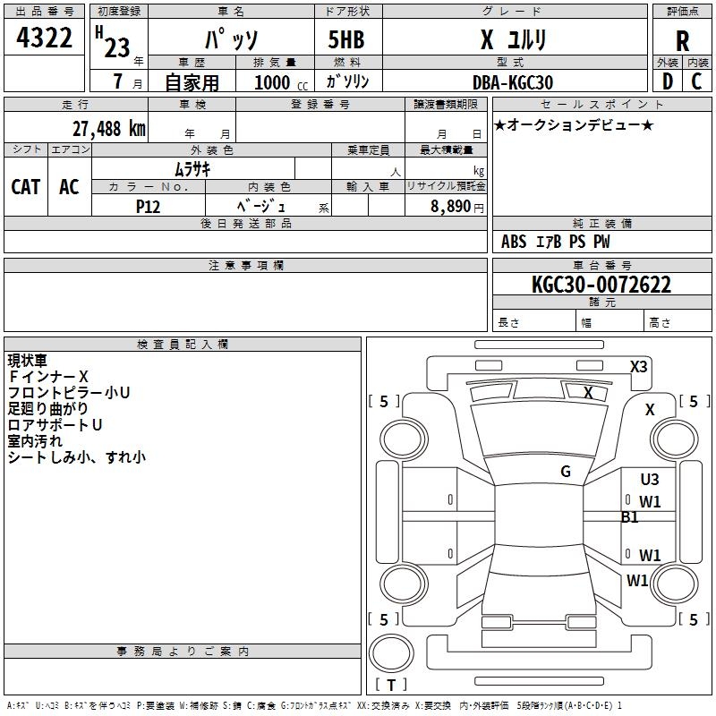 TOYOTA PASSO X YURURI - лот 4322