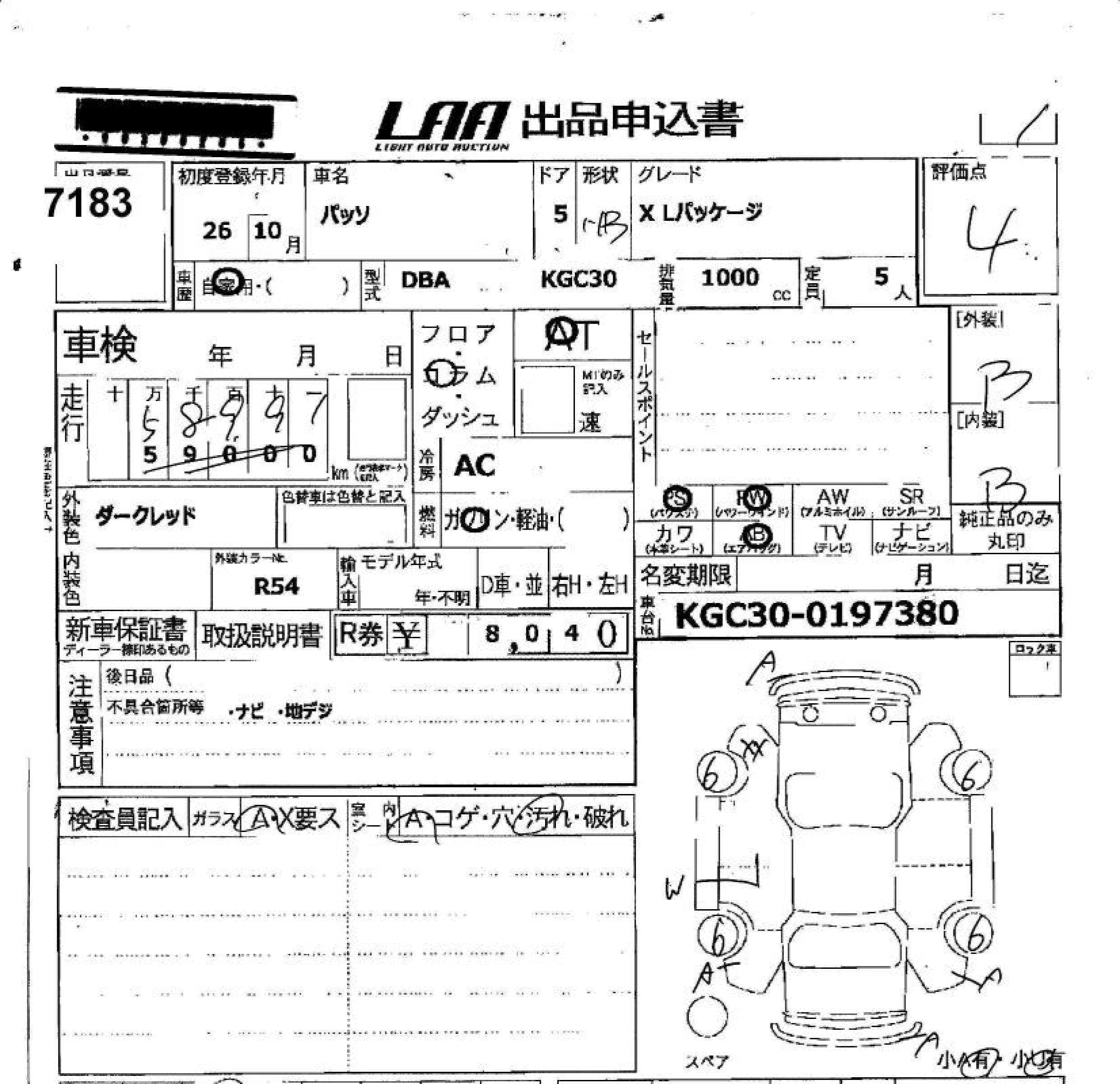 TOYOTA PASSO X L PACKAGE - лот 7183