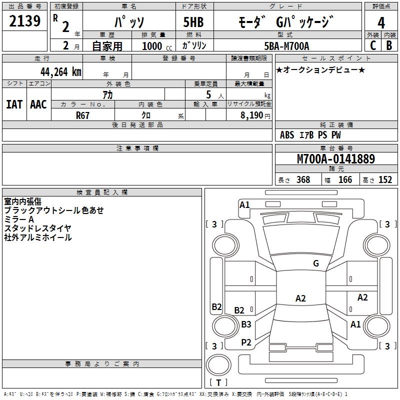 TOYOTA PASSO MO-DAG PACKAGE - лот 2139