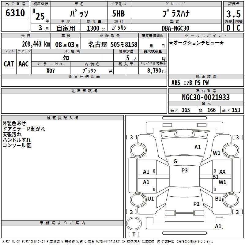TOYOTA PASSO +HANA - лот 6310