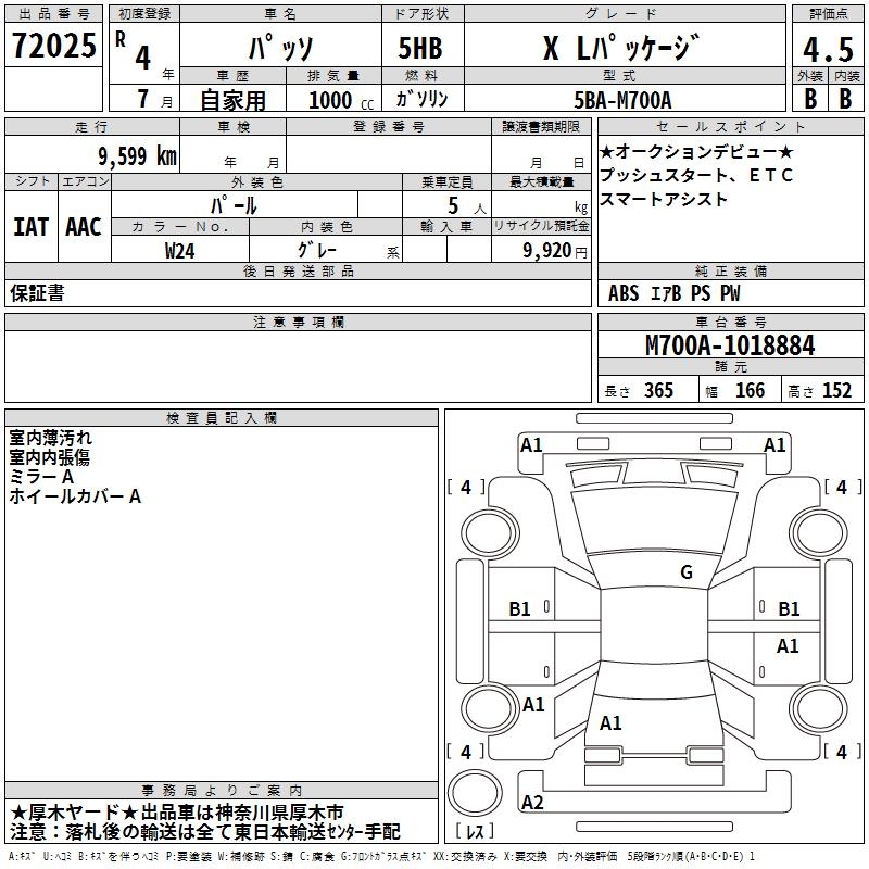 TOYOTA PASSO X L PACKAGE - лот 72025