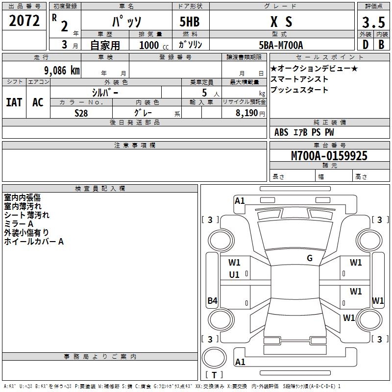 TOYOTA PASSO X S - лот 2072