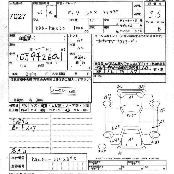TOYOTA PASSO 1.0XKTSUROGI - лот 7027