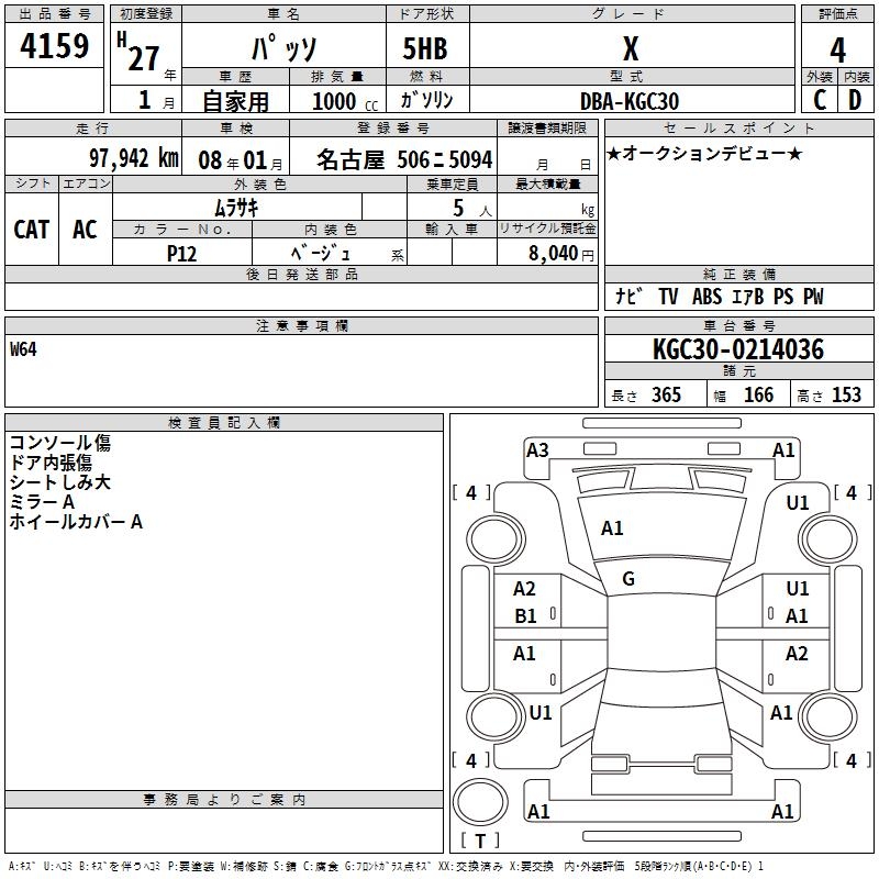 TOYOTA PASSO X - лот 4159