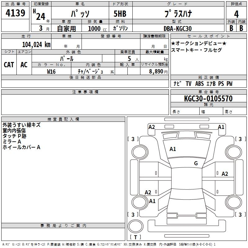 TOYOTA PASSO +HANA - лот 4139