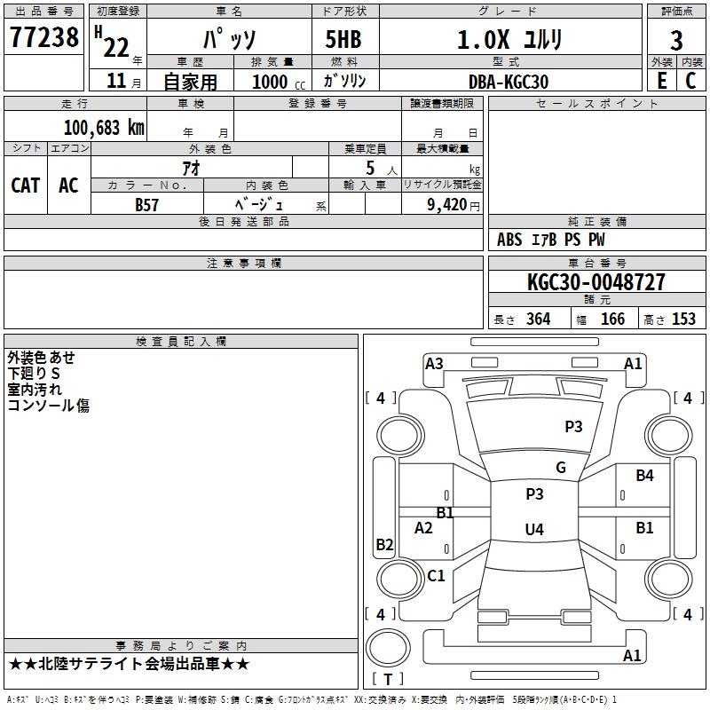 TOYOTA PASSO 1.0X YURURI - лот 77238