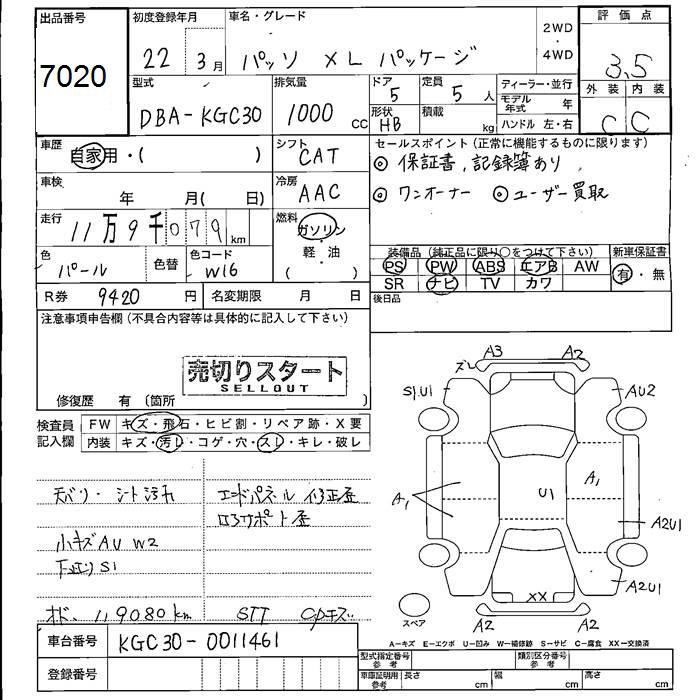TOYOTA PASSO X L PACKAGE - лот 7020