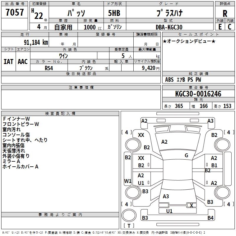 TOYOTA PASSO +HANA - лот 7057