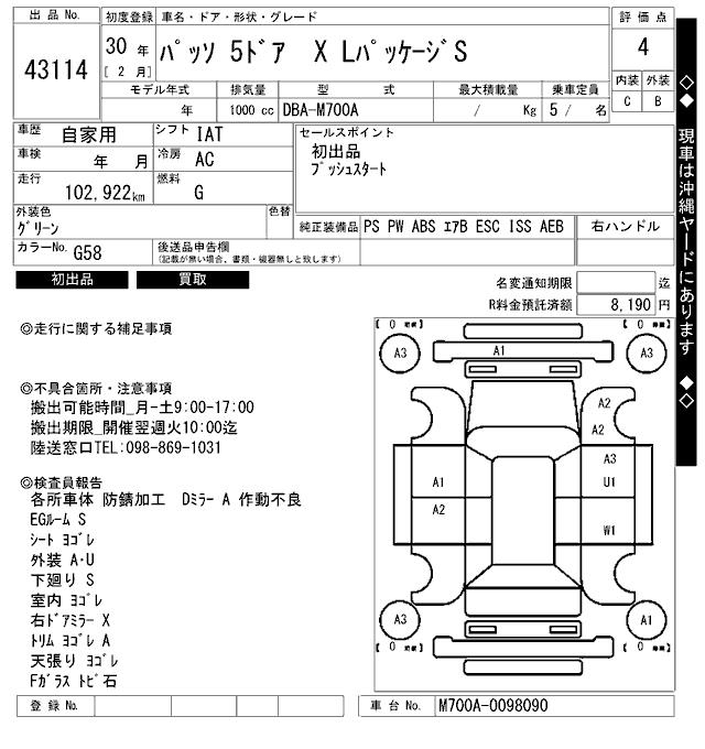 TOYOTA PASSO X L PACKAGE S - лот 43114